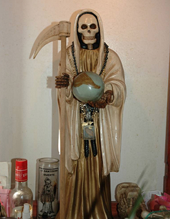 Such stories are also told of Santa Muerte statues who endure conflagration. Having focused my research on Santa Muerte during the past four years, I have heard numerous times from devotees of fires burning entire houses to the ground and when the owners returned to the scene the only thing they found amidst the ashes was a statue of Santa Muerte who proved to be miraculous.
