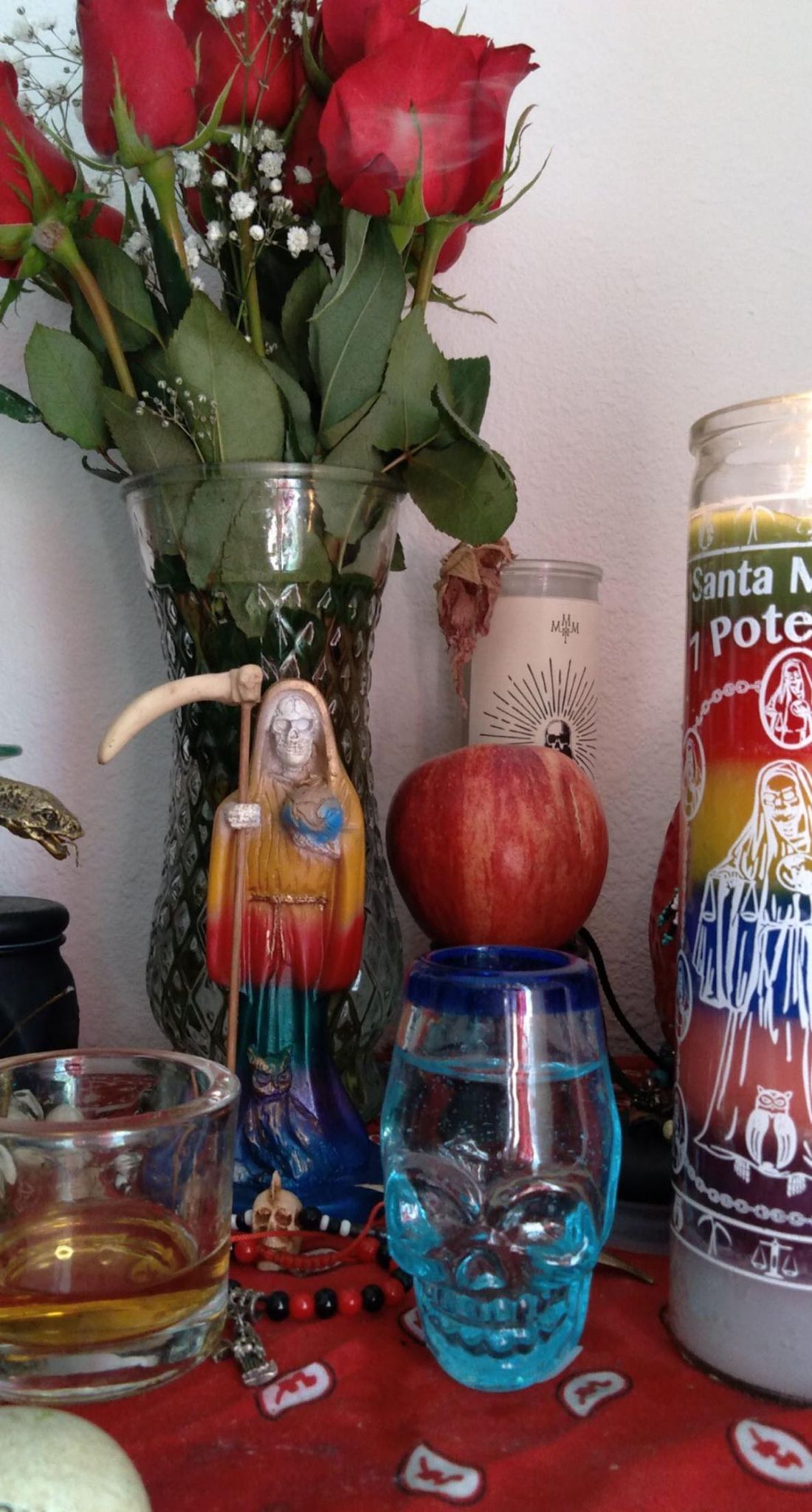 While my husband’s shop initially focused on Vodou and Hoodoo as those are his beliefs, it was always open to all and shortly before we met he began selling Santa Muerte merchandise as people were always asking for it. Ever since he began selling Santa Muerte statues and other items, people started coming in to ask advice on how to work with her. After we met, I became involved in the shop and now many people come to me to ask questions about Holy Death.