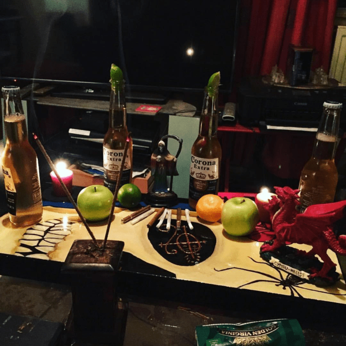 She (Santísima) does resemble a dark character in the U.K. we call the ‘Grim Reaper’ and I was a bit worried about messing around with bad spirits. At one stage early on I threw the Santa Muerte statue in the trash can because I thought it had hexed me. We made up though. Pretty soon my friends were getting used to it and learning about it and leaving their own offerings on the altar and asking La Niña Blanca (The White Girl) for favours and blessings. It’s not commonly known at all in the United Kingdom and I’ve only met the odd person online here who actually practises the religion in any serious way.