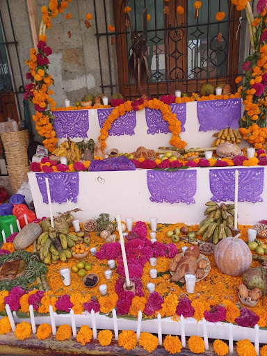 I enjoyed my stay in Puebla so much I was sorry to leave but onwards to Oaxaca. Timewise we are now getting closer to the Day of the Dead and Oaxaca City’s town square was so full of display ofrendas that the scent of marigolds permeated the air. In my culture, as a child, visiting a cemetery was actively discouraged so it was fascinating to see how the culture in Oaxaca takes a completely different and in my opinion healthier view of death.